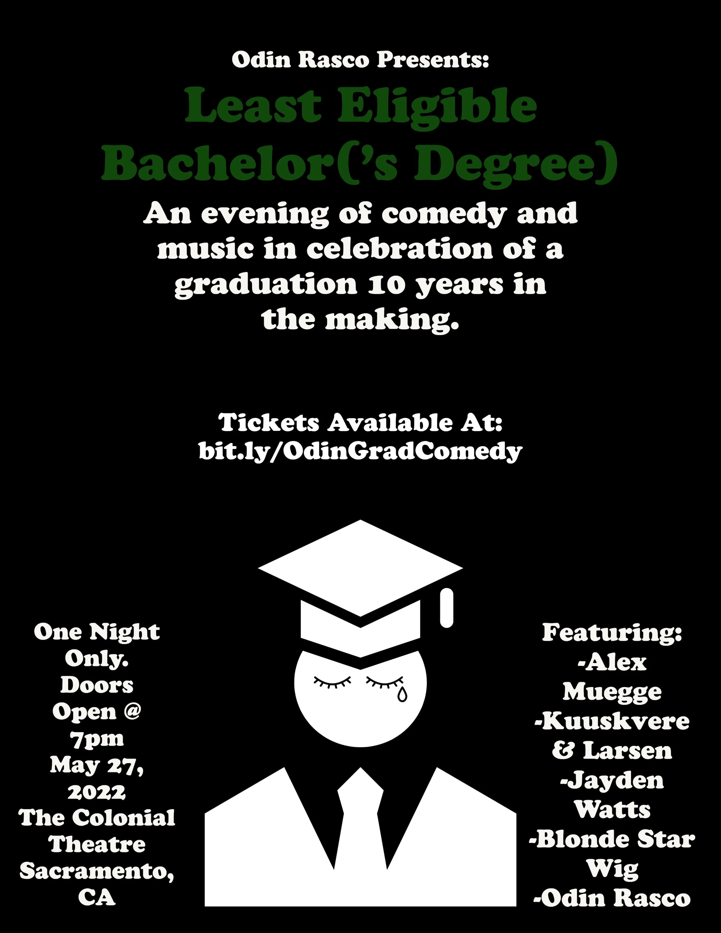 In celebration of my finally graduating from college, I put on the largest and most ambitious show of my career yet on May 27, 2022. The venue was the historic (and very pretty) Colonial Theatre in Sacramento, CA. I produced the whole thing while still working through the last months of college, finals, and graduation. The show was a success despite some technical hiccups.